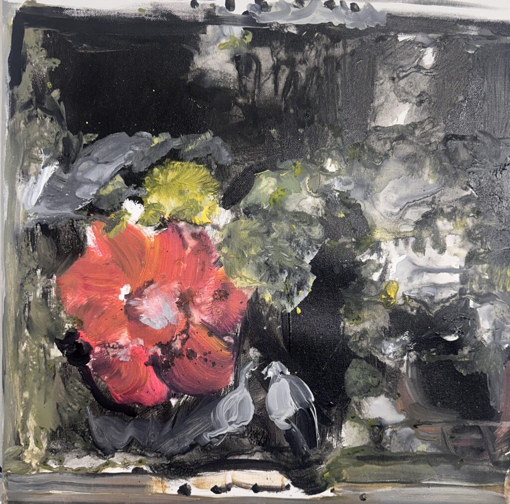 Zátiší. Za tichem první vrstvy se tu na plátnech rozehrává symfonie. Za první oponou se otvírá oceán nekonečna, ohromující barokního mořeplavce. Zátiší předpokládá smyslový zážitek. Zážitek krásy i pouhé existence všedních předmětů i věcí zvláštních a vzrušujících. Navzdory neživému klidu jde o život a jeho percepci. Žijeme, vnímáme smysly, zátiší zrcadlí vztah k hmotě, vypořádává se s jejími limitami. Malířsky předpokládá mimořádný cit pro zrakové i hmatové hodnoty. Aleš pochází z Bechyně, před Akademií zde studoval keramickou školu, a k materii, které je vhněten život, nemá daleko ani na obraze. Je výsostně smyslný kolorista, a nebojím se jej významem přirovnat k Josefu Navrátilovi na jeho vývěsních štítech. Neméně důležitý je v jeho tvorbě důraz na krásnou hmotu, belle matière, zprostředkovaný pastózní, místy až sochařsky modelovanou malbou a virtuózně podanými materiály. Peří, podobně jako u Purkyňovy sněžné sovy, se prachově chvěje, sněhová peřina na hrobě zazebe a vyvolá pocit pomíjivosti, spojený s „pevným“ skupenstvím vody, umocněný ohněm „věčného světýlka“. Navrátil a Purkyně jsou ikony českého umění zátiší 19.století. Růžička je obdobným zjevením současné malby. Ohromná zátiší navzdory klidnému žánru jsou fascinujícím prostorem barokního neklidu. Nepředstavují vždy reálná společenství předmětů, jde tu o myšlenkové instalace, zachycené klasickou malbou. Automat na svíčky, přihrádky kolumbária. Holoubci na náhrobním kameni, atlasová perleť v umělém alabastru. Živý, a nebo mrtvý? Láska až za hrob. Hřbitovní kvítí, ještě živé a již vadnoucí, květinové mumie z voskovaného papíru. Černé obrazy, kde z barokní temnoty prosvítá tajemství, doplňuje barevná antiteze v křiklavě pestrých pouťových zátiších. Květiny, opět papírové, teď ze střelnice na špejli, právě darované. Z věčné a pomíjivé lásky. Srdce z pouti. Kolikrát ještě?